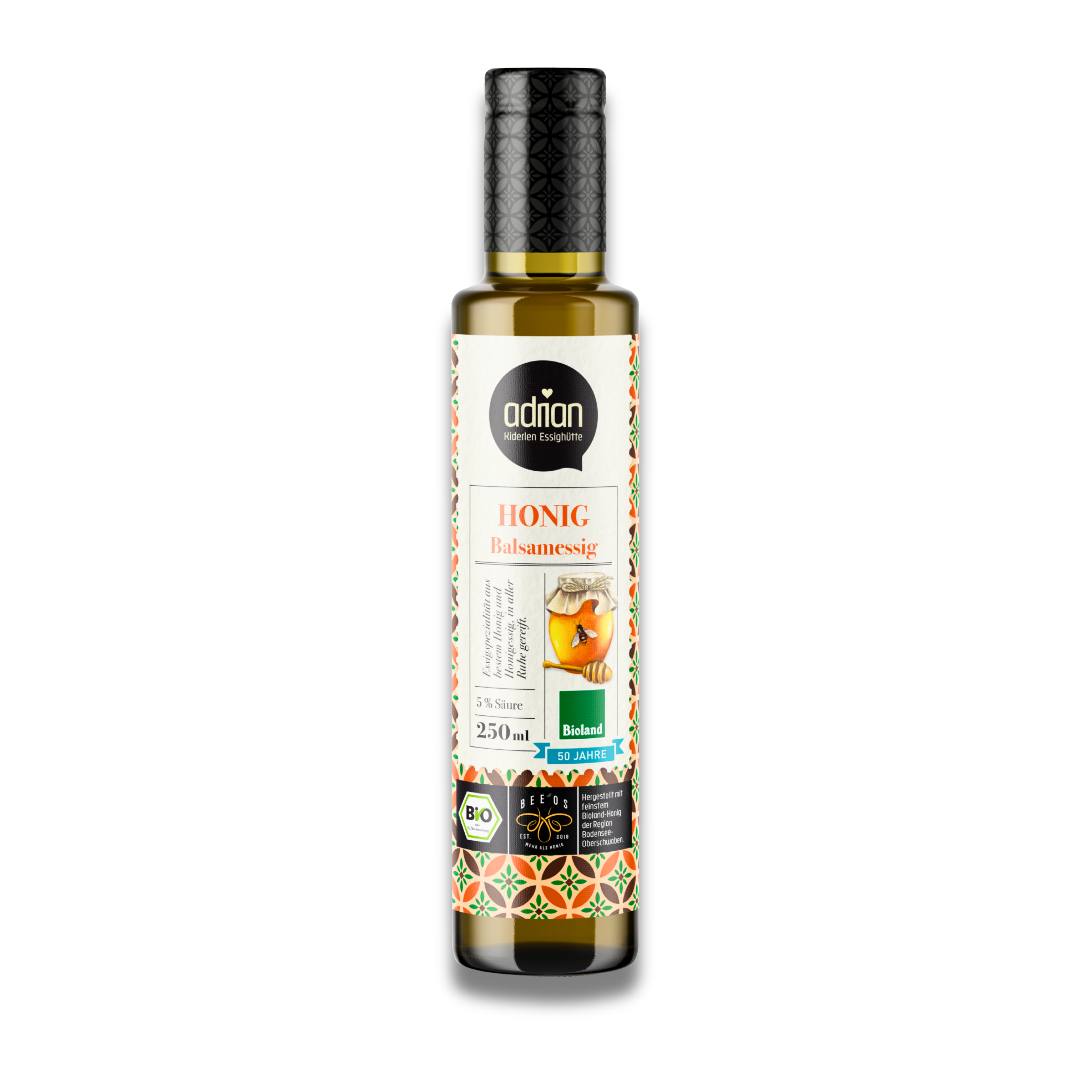 Honey vinegar combines the best of both worlds: the mild, fruity acidity of traditionally fermented vinegar with the floral depth of real honey. At the Adrian manufactory, this results in a natural product of exceptional elegance – pure, organic, and handcrafted.